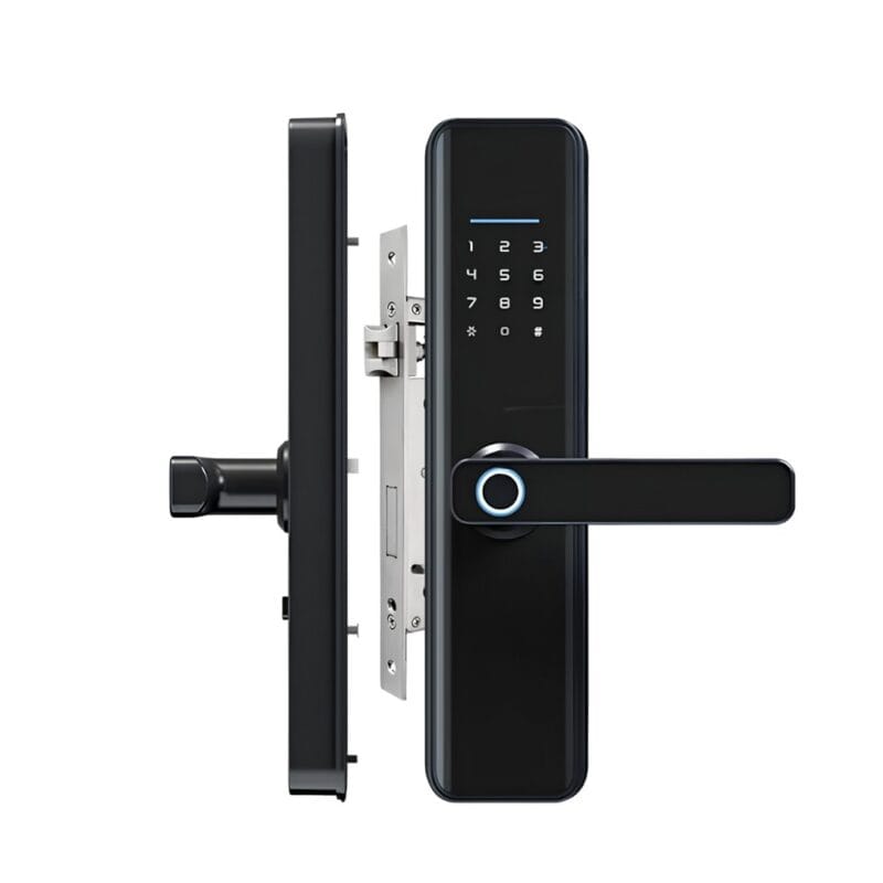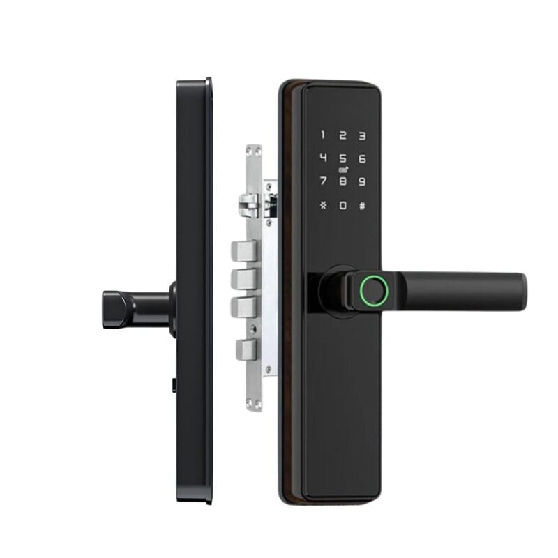 Marque Tuya Modèle D5 Slim Wifi Matériau Alliage d’aluminium Couleur Noir Modes d’accès Empreinte digitale, mot de passe, carte, bracelet,